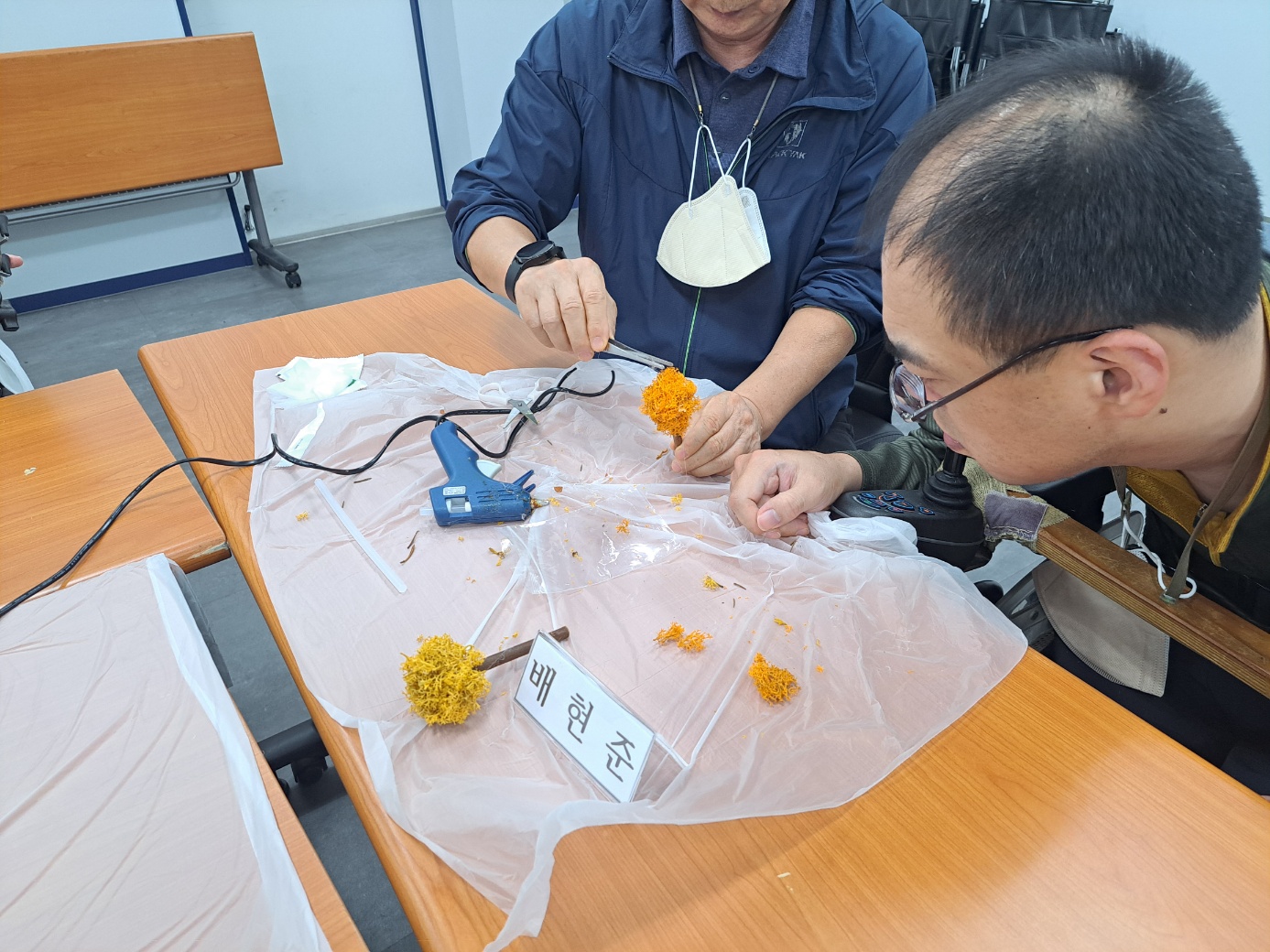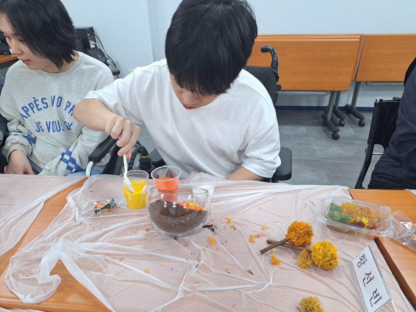 - 힐링원예 제8회차 가을 테라리움 꾸미기 하고 있는단원들