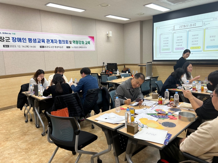 기장군 장애인 평생교육 관계자 협의회 ○ 일 시 : 2023.12.14.(목) 14:00 ○ 장 소 : 정관도서관 평생학습관 2층(가을 강의실) ○ 참 석 : 전웅길 사무국장 ○ 내 용 ..