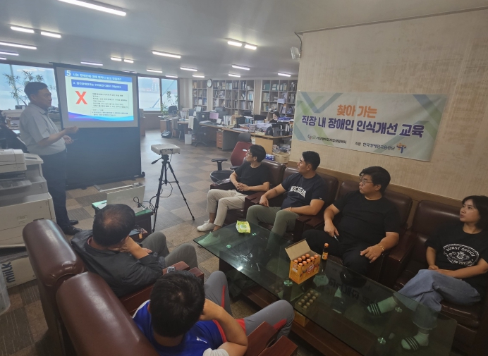 2023년도 직장 내 장애인 인식개선교육 ○ 수행기관명 : 기장장애인자립생활센터 ○ 교육대상 사업장명 : (주)대진수산(부산 시하구 다대동 소재) ○ 교육일시 : 2023.08.30.(수), 1..