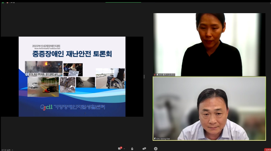 [부산세계장애인대회] '중증장애인 재난과 안전' 토론회 ✓ 본 토론회는 제6호 태풍 '카눈'의 영향으로 온라인(ZOOM)을 활용하여 개최되었습니다. ◦ 일 ..