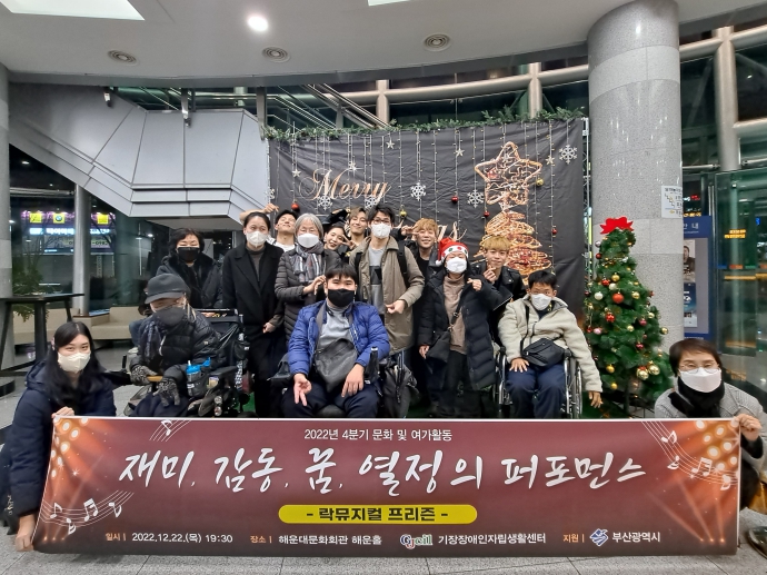 2022년 4/4분기 문화.여가활동 ✓ 본 행사는 코로나19 확산방지를 위하여 철저하게 방역수칙을 지키고 진행하였습니다. ○ 일 시 : 2022.12.22(목), 19:30 ○ 장 소 : 해운대문화회관 해운홀..