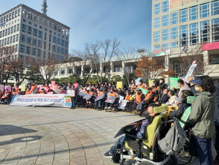 장애인자립생활 예산확보 촉구 기자회견 참가 ✓ 본 기자회견은 코로나19 확산방지를 위하여 철저하게 방역수칙을 지키고 진행하였습니다. ❍ 일 시 : 2022. 11. 17.(..