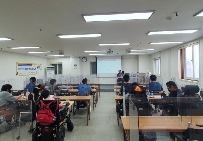 2022년도 장애인 동료상담 보수교육 ✓ 본 교육은 코로나19 확산방지를 위하여 철저하게 방역수칙을 지키고 진행하였습니다. ㅇ 교육일시 : 2022.09.26.(월)~09.27.(..
