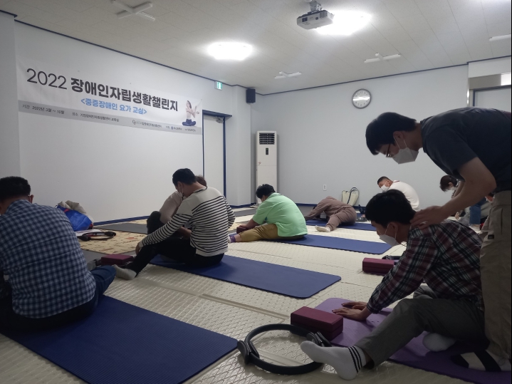 2022년 제10차 발달장애인 요가교실 ✓ 본 활동은 코로나19 확산방지를 위하여 철저하게 방역수칙을 지키고 진행하였습니다. ○ 일 시 : 2022.10.17.(월), 14..