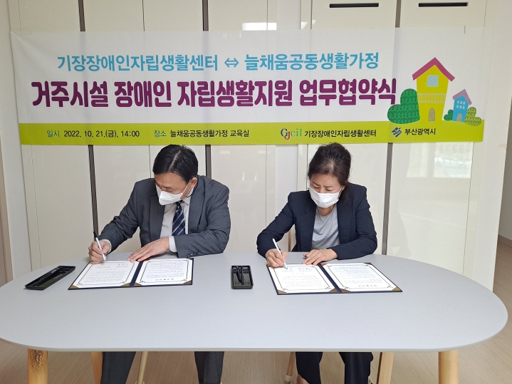 기장IL센터, 늘채움공동생활가정 업무협약 체결 ○ 협약체결 기관현황 기 관 명 대표자 소 ..