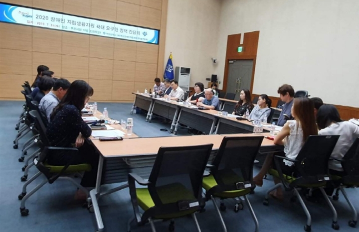 2020 장애인자립생활지원 정책간담회 ○ 일 시 : 2019.07.24.(수), 10:00 ○ 장 소 : 부산광역시청 12F. 소회의실 ○ 내 용 ▷ 2020년 자립생활예산 논의 ▷ 부산장애인자립생활 당면사안 논의 등 ○ 참여인원 : 부산장애인자립생활..