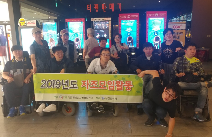 2019년도 5월 자조모임 활동○ 일 시 : 2019.05.29.(수), 13:00~17:30○ 장 소 : CGV아시아드(부산 연제구 종합운동장로 7)○ 대 상 : 기장IL센터 자조모임단 9명, 활동지원인 2명○ 행사..