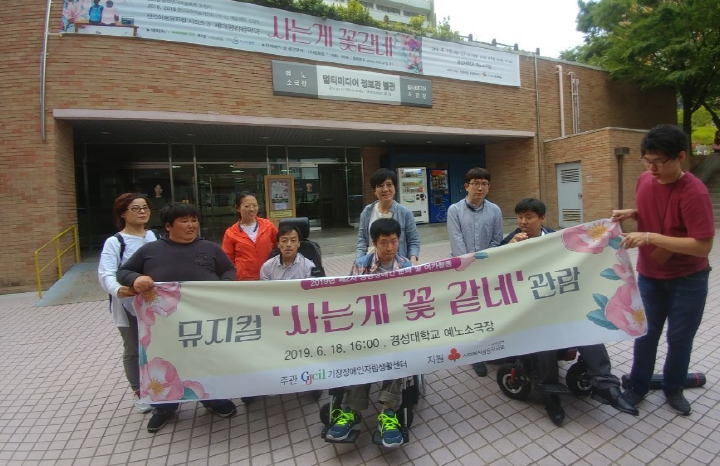 2019년 2/4분기 문화.여가활동 ?일 시 : 2019.06.18(화), 15:30 ?장 소 : 예노소극장(부산 남구 수영로 309 경성대학교) ?대 상 : 기장IL센터 자조모임단원, 이용자 9명 ?행사내용 : 뮤지컬 "사는 게 ..