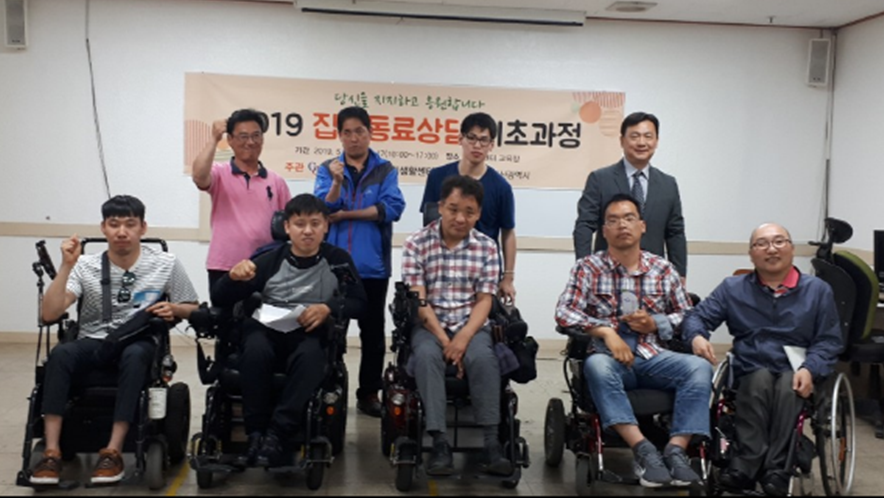 2019년도 동료상담 정기(기초)교육○ 기 간 : 2019. 5. 16 ~ 5. 17 (2일간, 10:00~17:00)○ 장 소 : 부산IL센터 교육실○ 참 여 : 중증장애인 당사자 8..