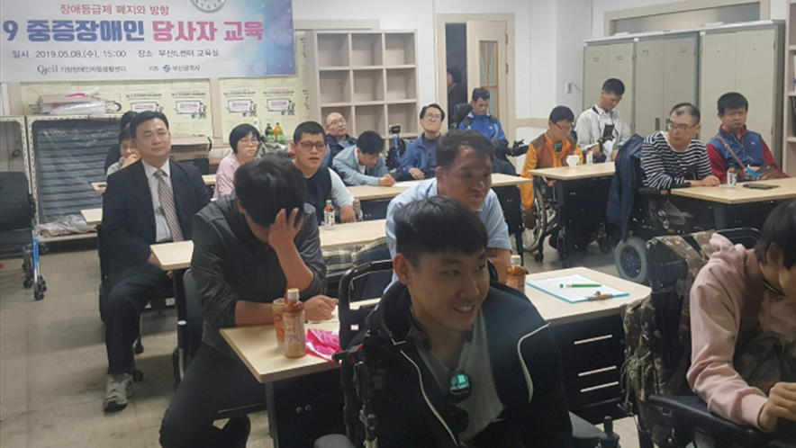 2019년도 제1차 장애인당사자 교육○ 일 시 : 2019.05.08(수), 15:00○ 장 소 : 부산장애인자립생활센터 교육실○ 참 석 : 장애인 당사자 15명○ 강 사 : ..
