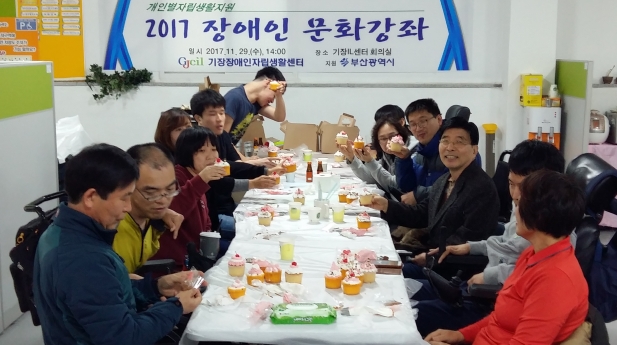 2017 장애인문화강좌○ 일 시 : 2017.11.29(수), 14:00~16:30○ 장 소 : 기장장애인자립생활센터○ 참 석 : 장애인 및 활동보조인 등 12명○ 강 사 : 손수케이..