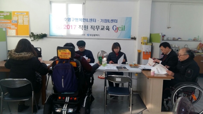 2017년도 제3차 활동가 직무교육○ 일 시 : 2017.12.11(월), 12:00○ 장 소 : 기장장애인자립생활센터 교육실○ 참 석 : 기장IL센터 및 수영구행복한IL센터 활동가 등 8..