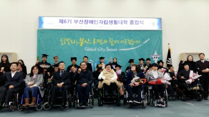 2017년도 제6기 부산장애인자립생활대학 졸업식○ 일 시 : 2017.12.21.(목) 14:00 ○ 장 소 : 부산광역시청 대회의실(1층)○ 참 석 : 내빈, 교수, 졸업생 및 가족, 활동..