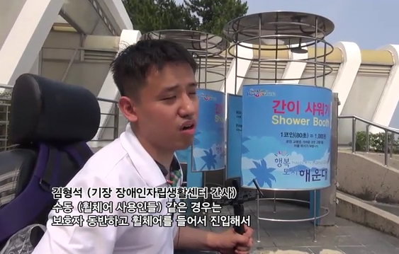 해운대 해수욕장, 휠체어 사용인들 샤워는?[펌.에이블뉴스]