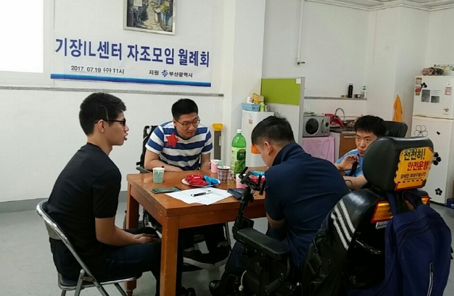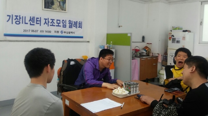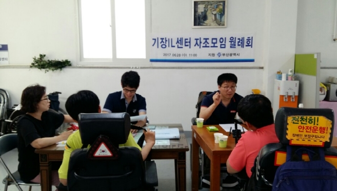 7월 기장장애인자립생활센터 자조모임 월례회○ 일 시 : 2017.07.19(수), 11:00○ 장 소 : 기장장애인자립생활센터 회의실○ 참 석 : 자조모임 단원 5명○ 내 용 ..
