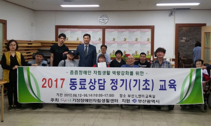 2017년도 기장IL센터 동료상담 정기(기초)교육 ○ 기 간 : 2017. 6. 12 ~ 6. 14 (3일간, 10:00~17:00)○ 장 소 : 부산IL센터 교육실○ 대 상 : 동료상담가 (기..
