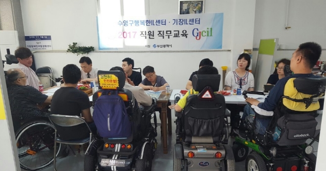 2017년도 직원 직무교육 ○ 일 시 : 2017.06.21(수), 14:00○ 장 소 : 기장장애인자립생활센터 교육실○ 참 석 : 기장IL센터 및 수영구행복한IL센터 직원 등 13명○ 강..