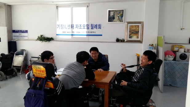 2017년 4월 기장IL센터 자조모임 정기회의 개최○ 일 시 : 2017.04.18.(화), 11:00○ 장 소 : 기장IL센터 사무실○ 참 석 : 기장IL센터 자조모임 단원 5명 ○ 내 ..