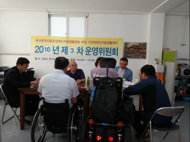 2016년도 제3차 운영위원회 개최 ○ 일 시 : 2016.09.20(화), 10:30○ 장 소 : 기장장애인자립생활센터 회의실○ 참 석 : 운영위원 4명○ 내 용 - 안건1 - 기장IL센터 정관..