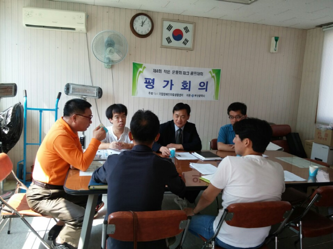 제4회 작은 운동회 파크골프 대회 평가회의 ○ 일 시 : 2016.09.23(금), 12:00○ 장 소 : 기장군장애인협회 사무실○ 참 석 : 7명(기장IL센터 2, 기장군협회 3, 기장장애인..