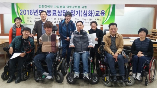 2016년도 동료상담 정기(심화)과정 ○ 교육기간 : 2016.11.01~11.3(3일간)○ 장 소 : 부산IL센터 교육실○ 참 여 : 부산지역 거주 장애인 5명○ 내 용 - 나와 내..
