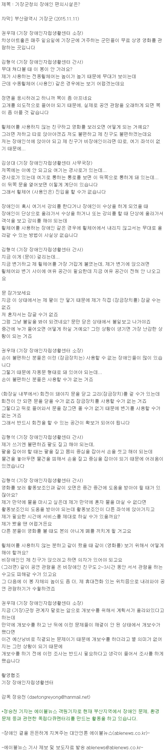 기장장애인자립생활센터주소 : 부산광역시 기장군 기장읍 기장대로 482 3층