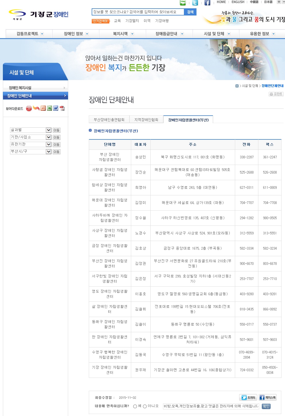 기장군 장애인단체 자립생활센터(부산) 리스트 등재